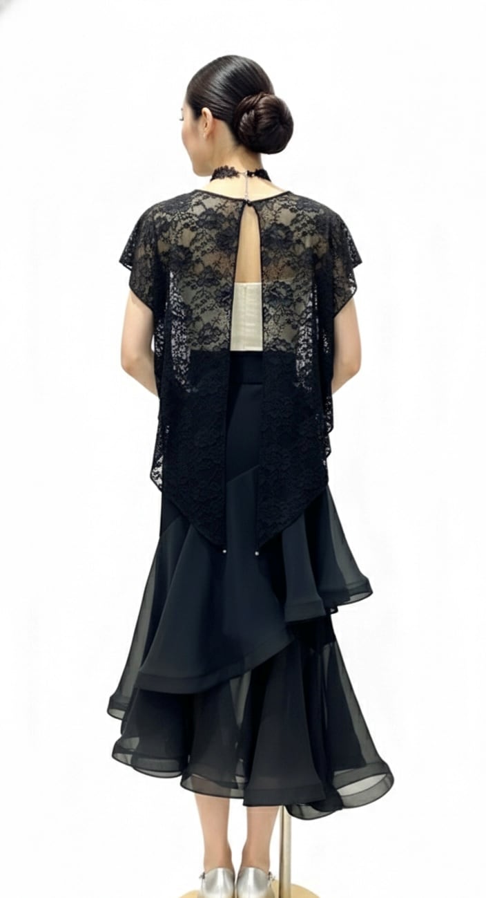 ジョーゼット生地に使われた裾のクリノリンが、ターンの度に空気を含み、美しく揺れるスカートとなっております。