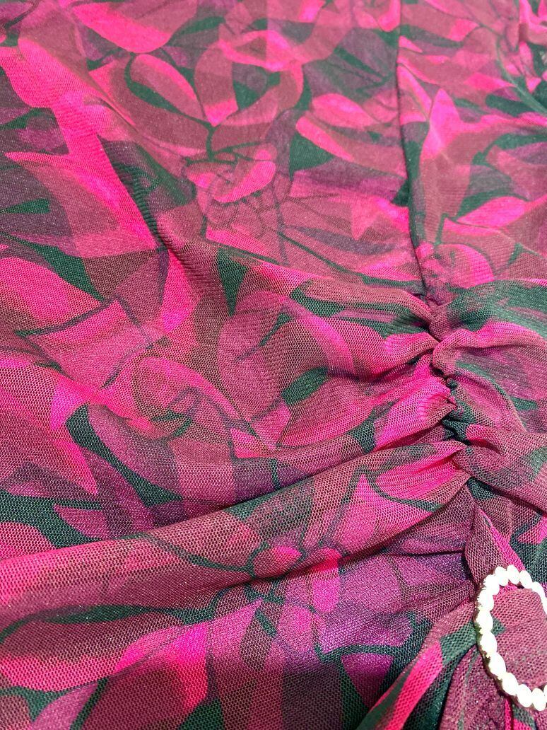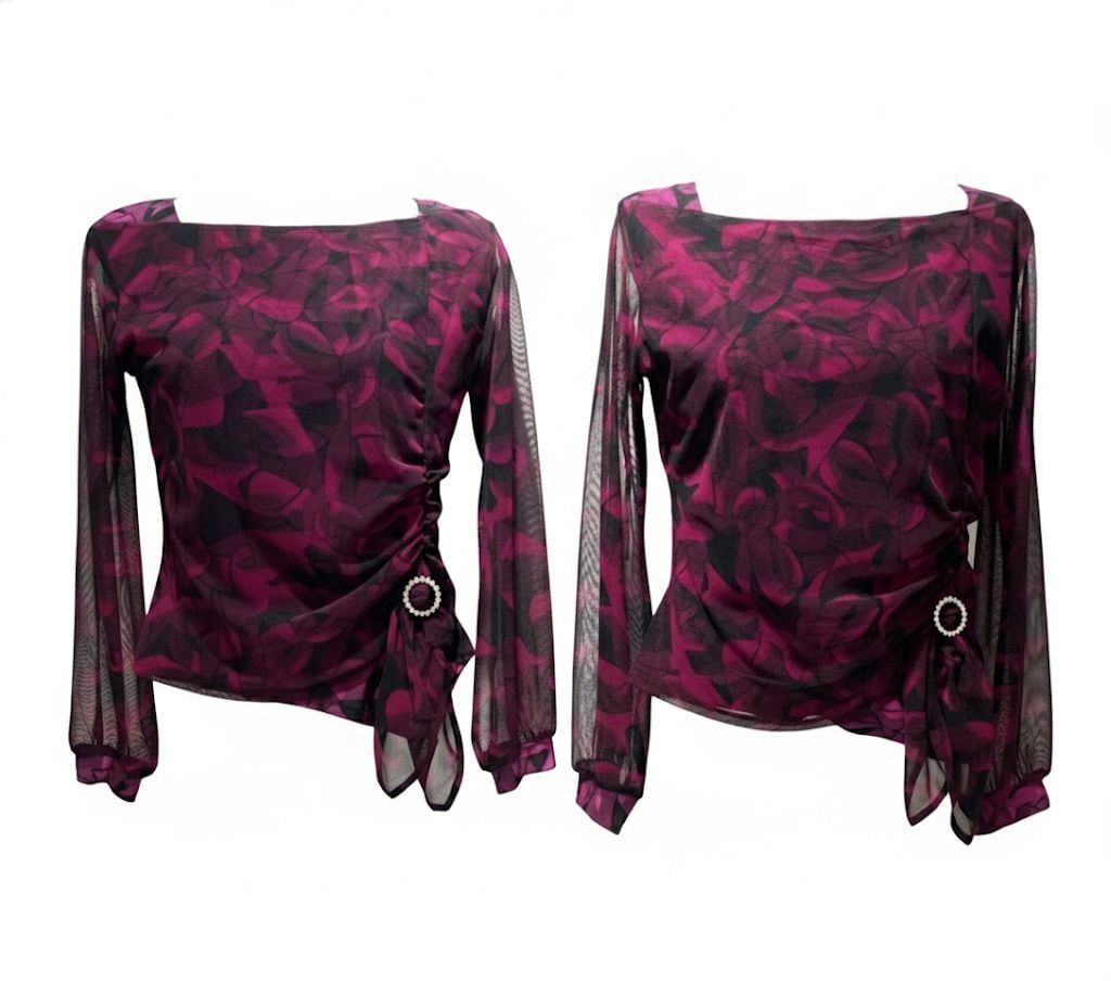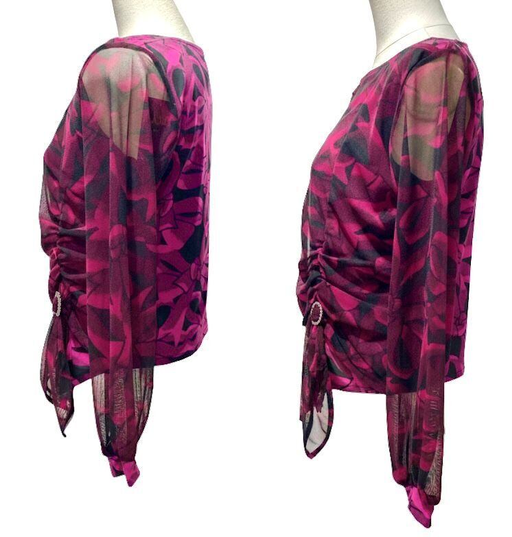 控えめなパフスリーブは、腕を華奢見えにみせる効果がある上、前身頃のギャザーは気になるお腹周りをスッキリとした印象を与えます。