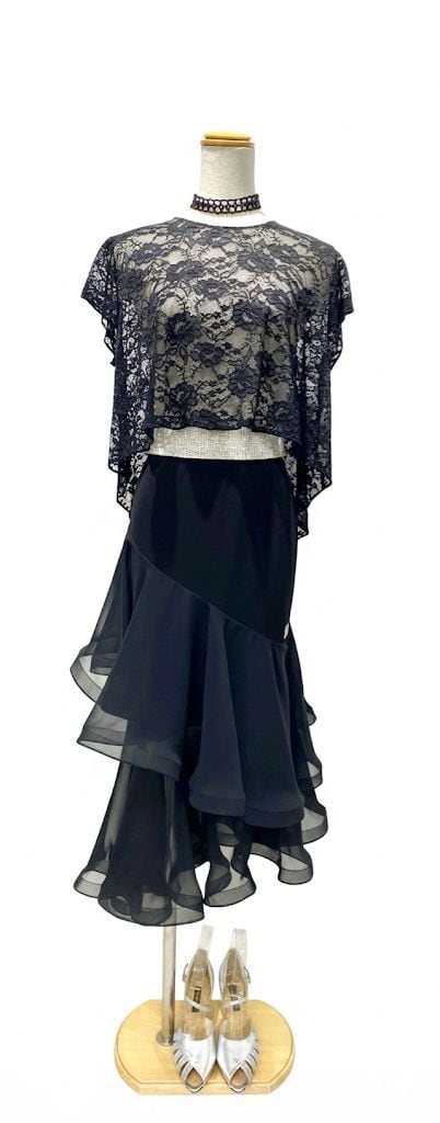ダンスビュウ掲載品【POPCON ATELIER】swt004-1 バックスリットレーストップス 社交ダンス